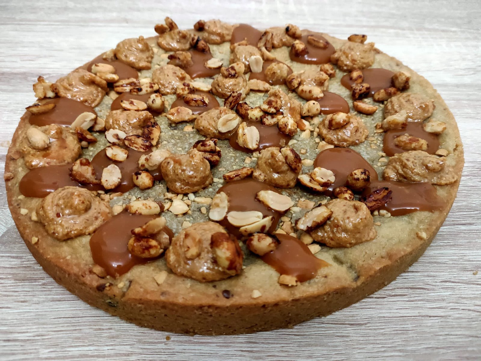 Pâte à cookie aux brisures de chocolat au lait, Praliné Cacahuètes, Caramel-vanille et Cacahuètes Caramélisées